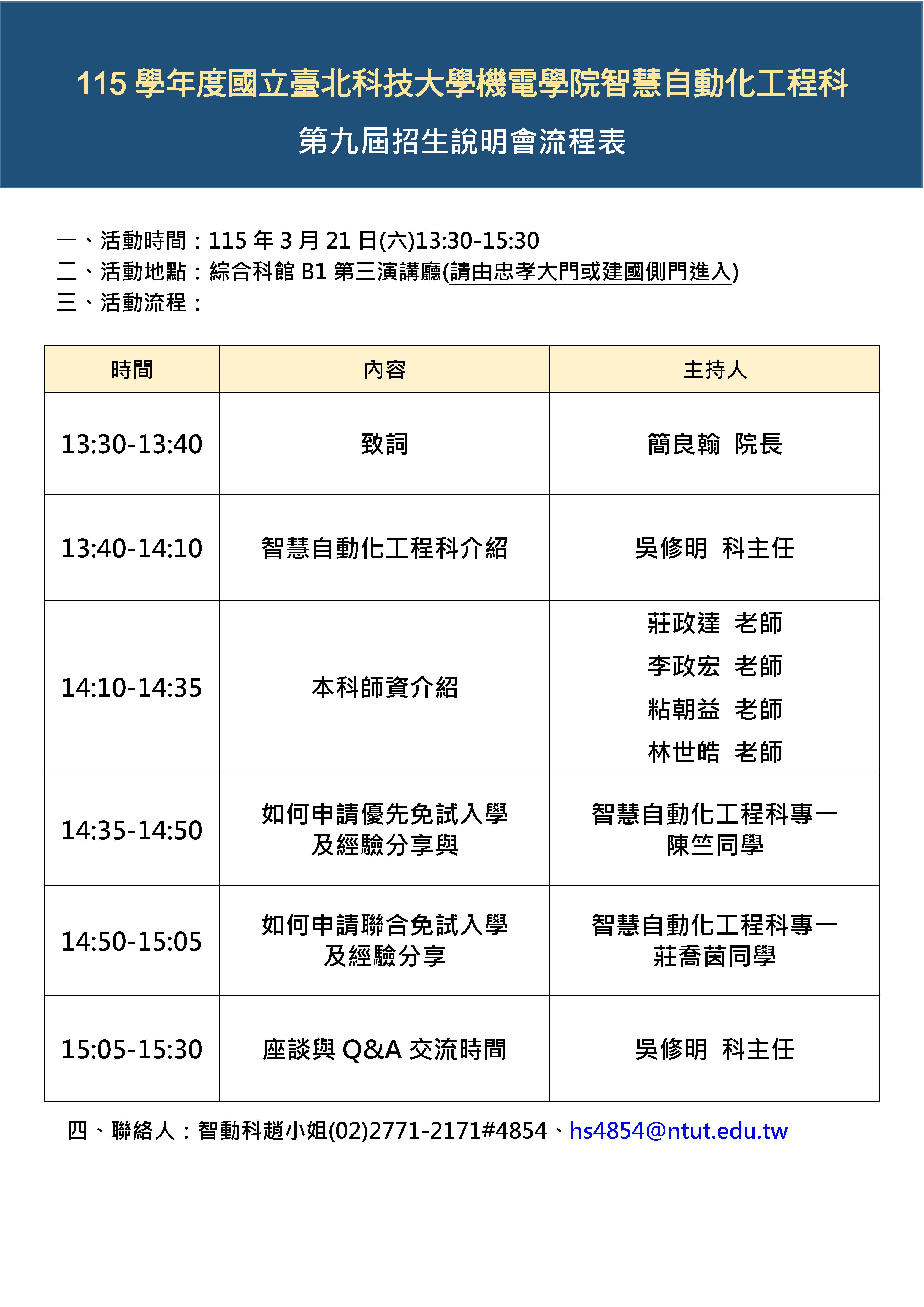 115學年度智慧自動化工程科第九屆新生家長座談會